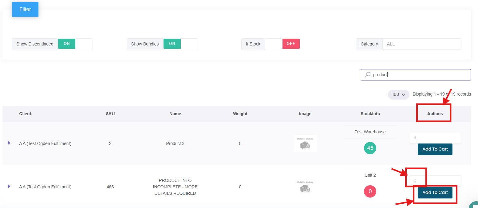 2. Add the Product(s) to the Order using the Actions column.