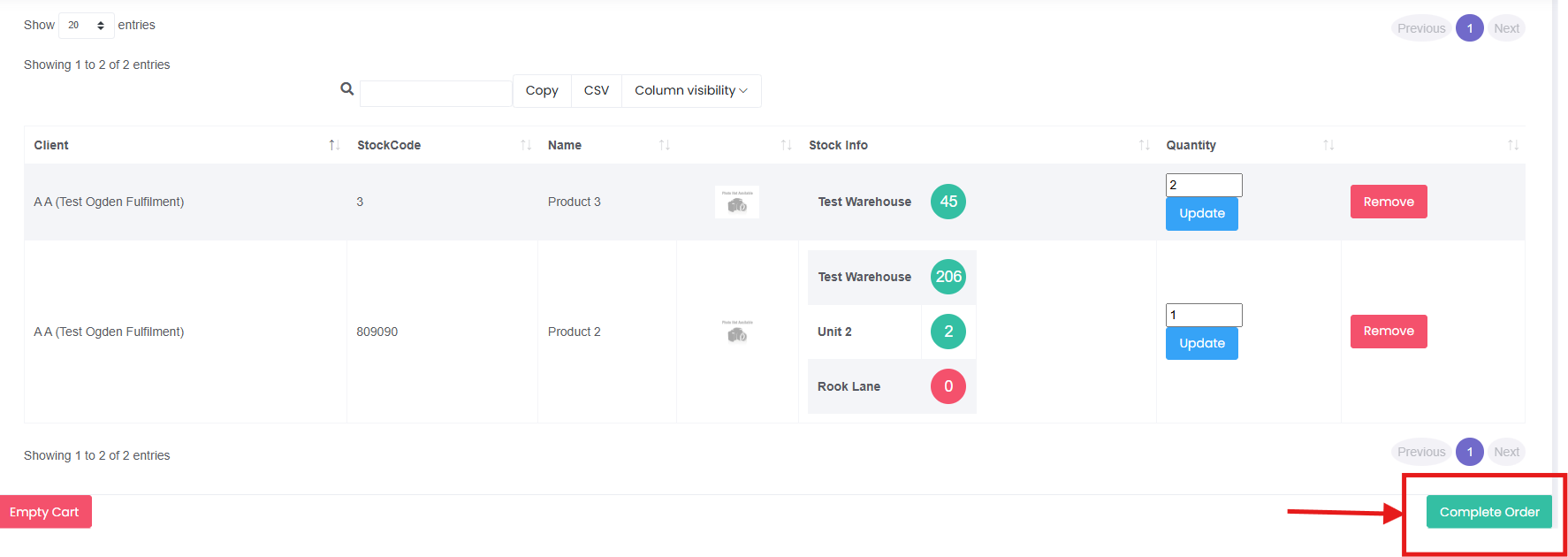 3. Once all items have been added click Complete Order.