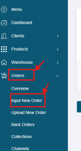 Click Orders then Input New Order.