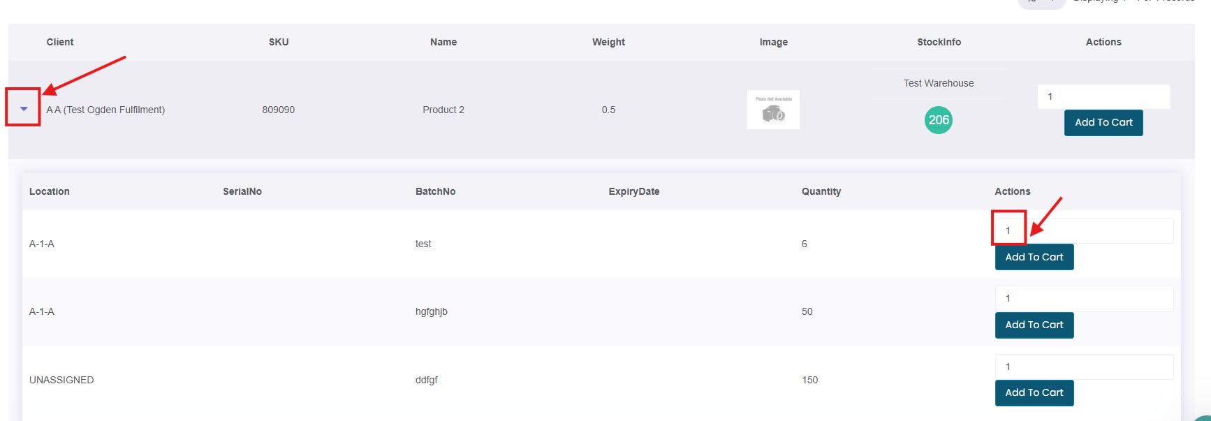 Find the specific record of stock, enter the required quantity into the Actions column.
