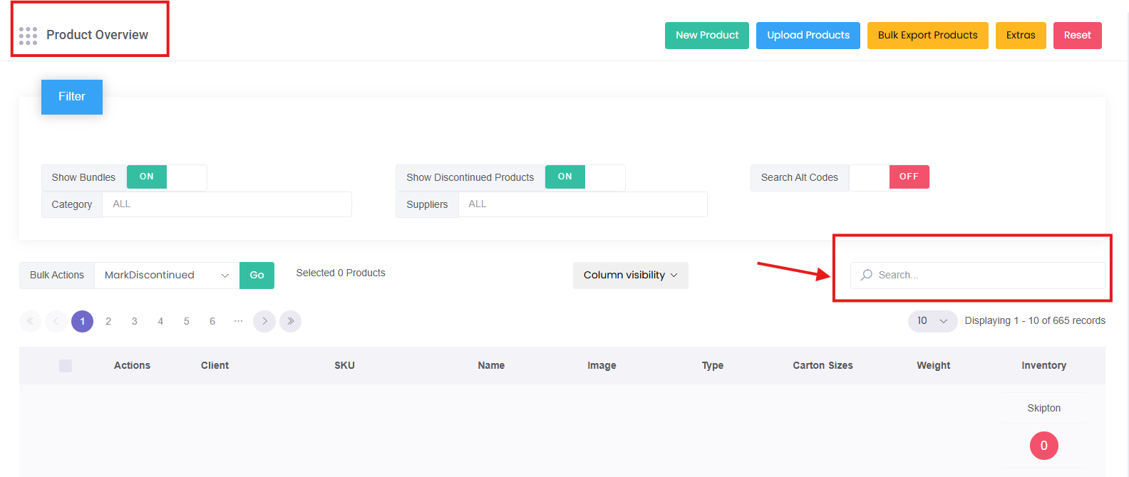 1. Go to Products - Overview and search for the product you are wanting to edit: